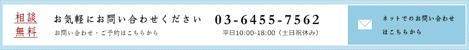 03-6455-7562 (10:00〜18:00 土日祝休み)